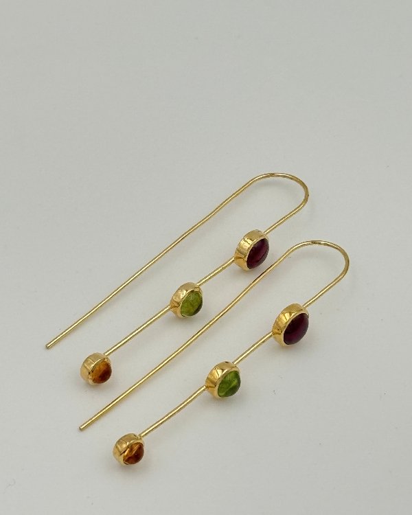 Pendiente de gancho en plata de ley con baño de oro y tres piedras.