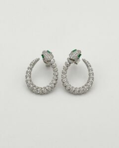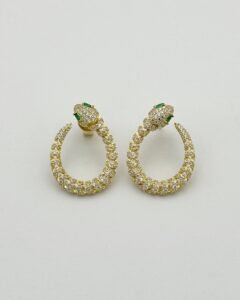 Pendiente largo en plata de ley con baño de oro y cinco Turmalinas en bruto.