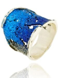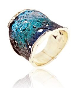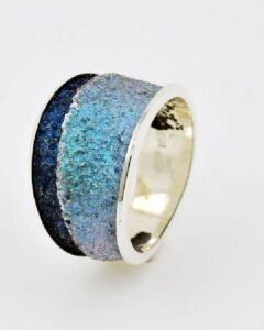 Anillo de diseño contemporáneo que combina varias tiras pigmentadas sobre plata de ley texturizada, creando un estilo elegante y vibrante.