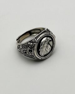 Anillo en plata de ley con cruces de diferentes tamaños y relieves con incrustaciones de circonita en color azul y rosa. Al ser abierto se puede ajustar a cualquier medida.