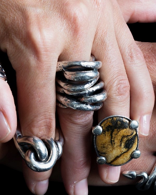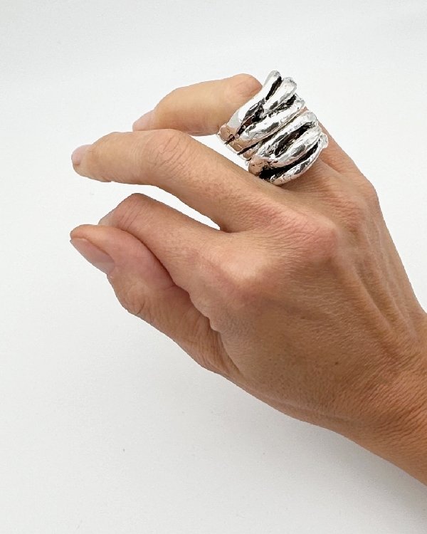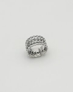 Anillo en plata de ley con tres filas entrelazadas en altura. Diseño perfecto para llevar sólo o combinarlo con otro igual.
