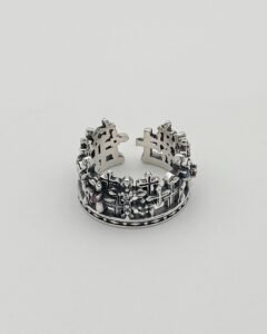 Anillo en plata de ley con forma de esqueleto. Al ser abierto se ajusta a cualquier medida.