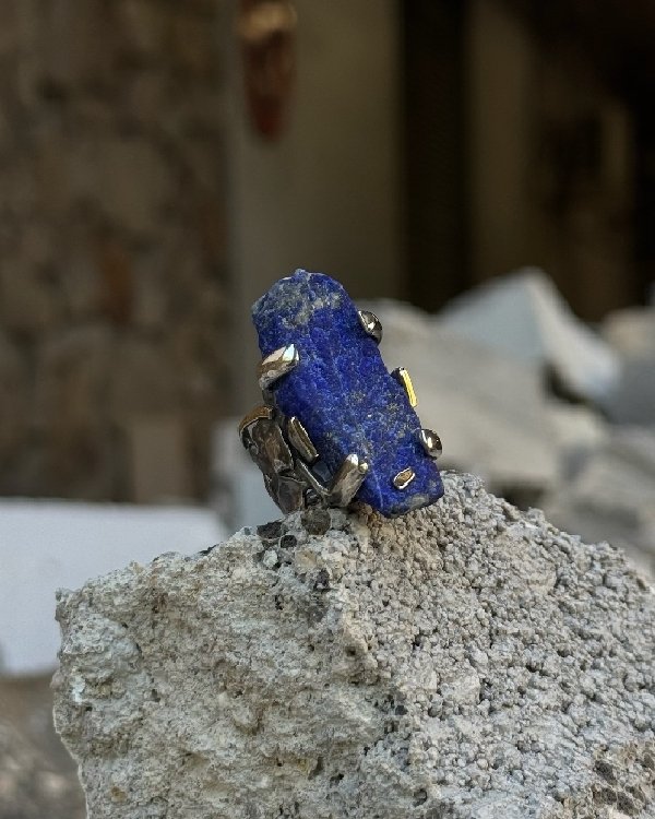 Anillo en plata, oro de 18k y lapislázuli en bruto.