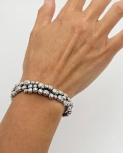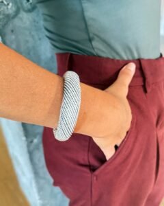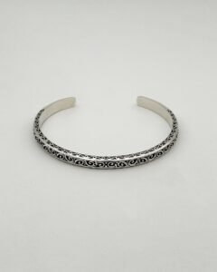 Brazalete rígido en plata y Turquesas con labrados en relieve.