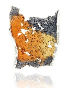 Un colgante de diseño inspirado en la naturaleza, que combina textura y pigmentación en plata de ley, evocando la elegancia de cañas o juncos agrupados.