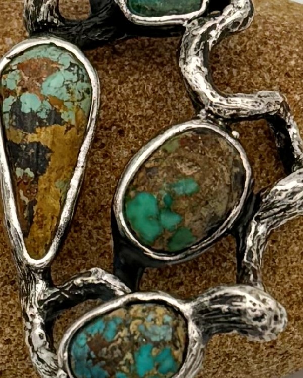 Colgante en plata labrada y cuatro Turquesas.