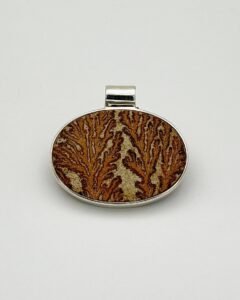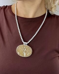Colgante en plata con Piedra de Luna decorada con hojas de vid.