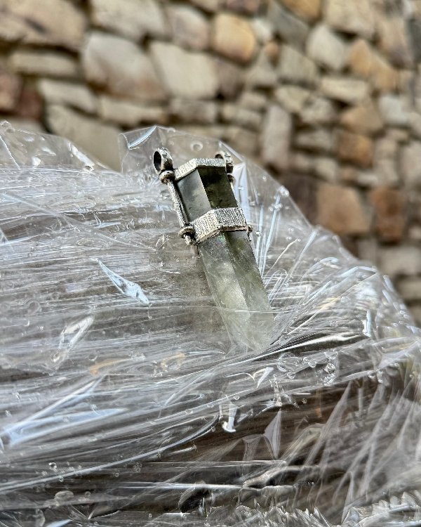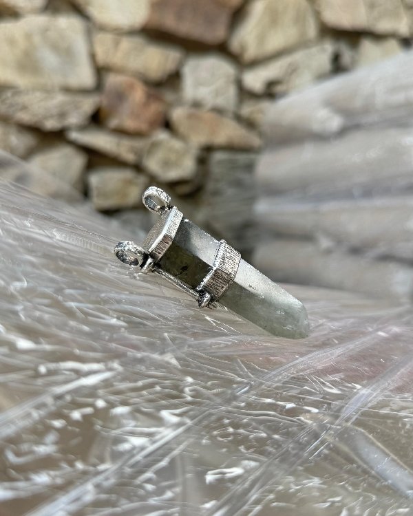 Colgante en plata y Cristal de Roca con forma de prisma. Hecho a mano.