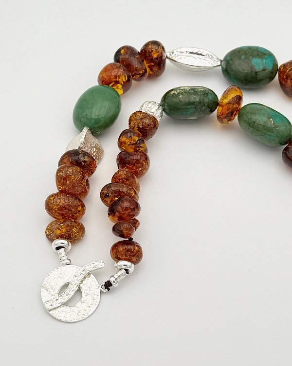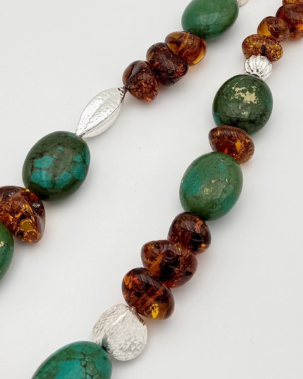 Collar en plata mate, Turquesa y Ámbar del Mar Báltico.