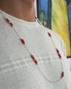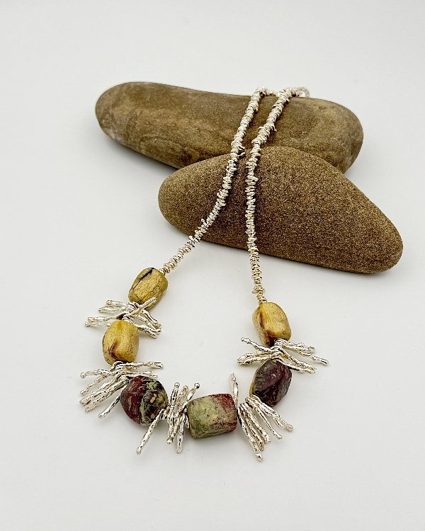 Collar con barritas en pata mate y cuentas rectangulares de Jaspe.