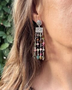 Collar con cuentas rectangulares de Jaspe en tonos marrones y barras irregulares en plata mate.