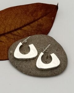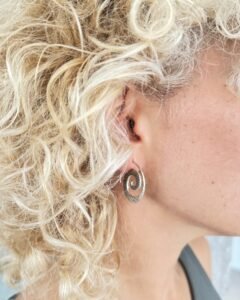 Pendiente de aro en plata de ley con cierre de presión. Diseño realizado con la técnica del electroforming para que sea más cómodo y ligero.