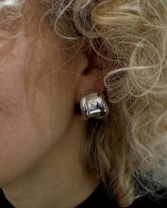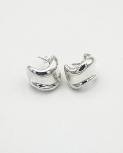 Pendiente de aro en plata de ley con forma de media luna. Cierre de presión.