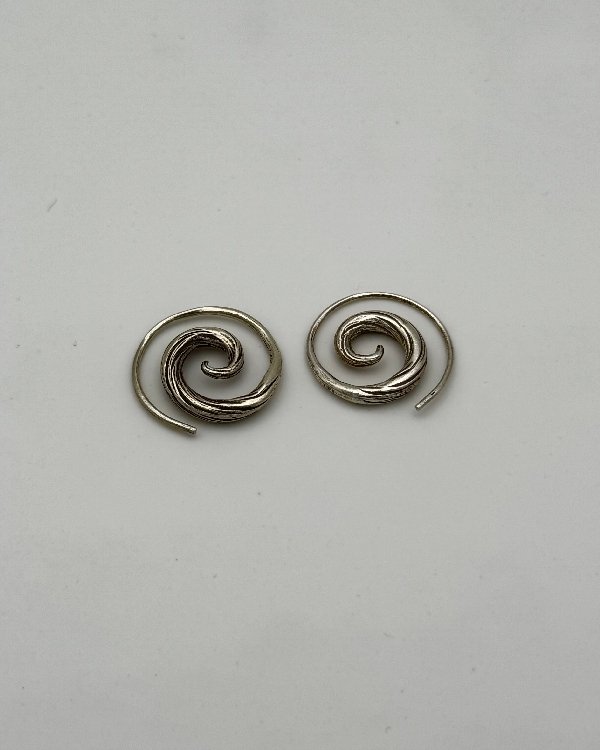 Pendiente en plata de ley labrada con forma de espiral. Estas piezas están realizadas a mano por artesanos de Chiang Mai, zona norte de Tailandia.