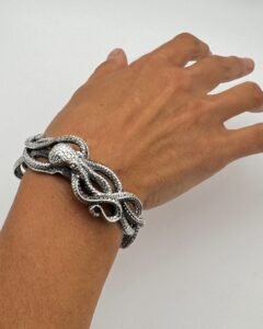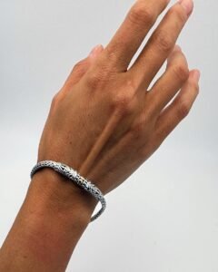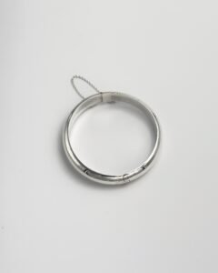Pulsera en plata de ley lisa. Aro plano con forma cuadrada y cierre de caja escondida.