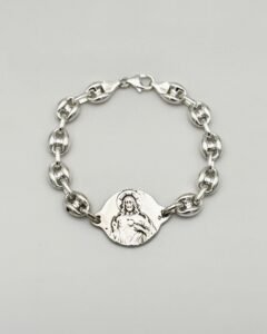 Pulsera con piedras semipreciosas en colores verdes y marrones de distintas formas engastadas en plata de ley.